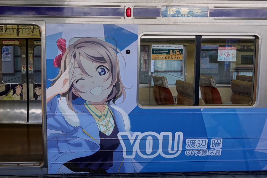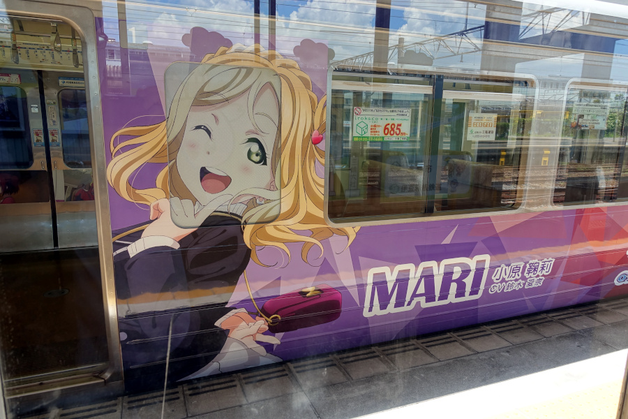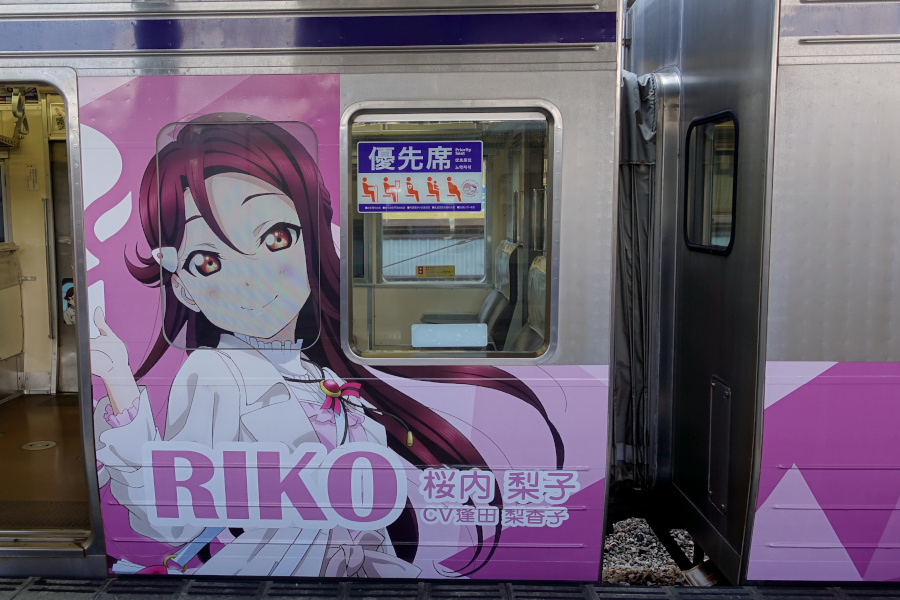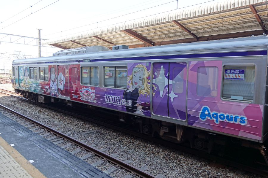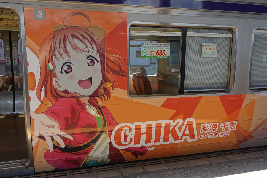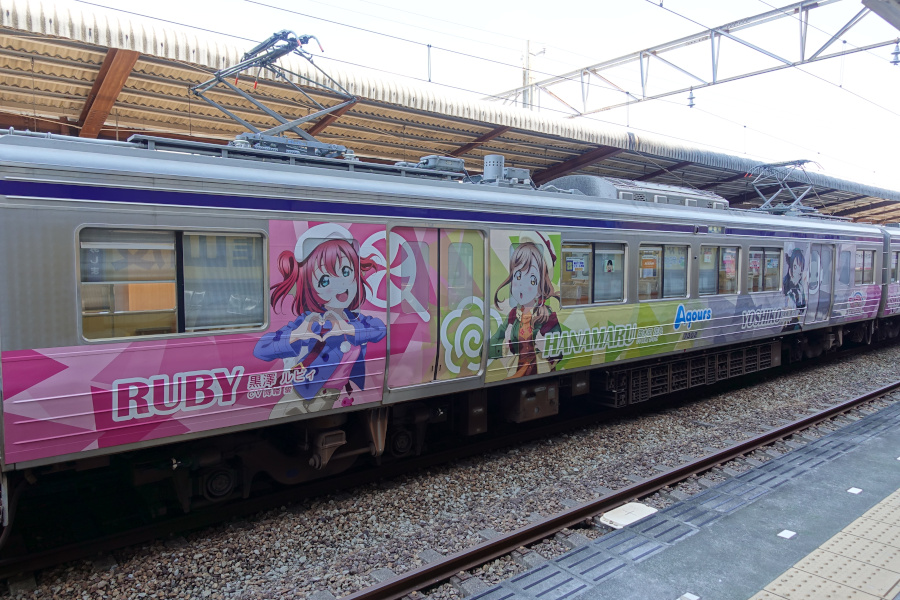 ラブライブ!サンシャイン!!「Over the Rainbow」(2021/07/25撮影) 劇場版公開を記念して運行開始した新たなラッピング電車です。定期検査に合わせてこのラッピングは終了となり、2023年より新たなラッピングが施されています。