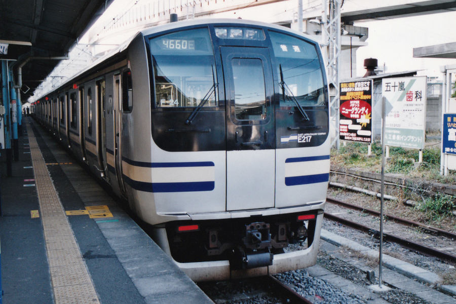 こちらはE217系充当の新宿行きです。前面表示器が「横須賀線-総武線」ではなく「普通」となっている点が特徴です。