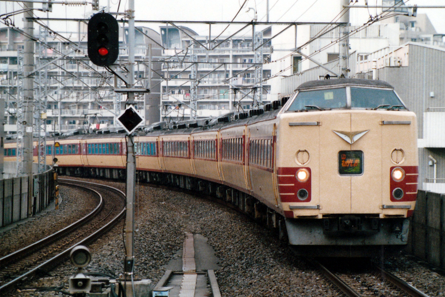 かつて房総特急に用いられていた183系です。非貫通型だと列車愛称表示機が大型で見やすいですね。