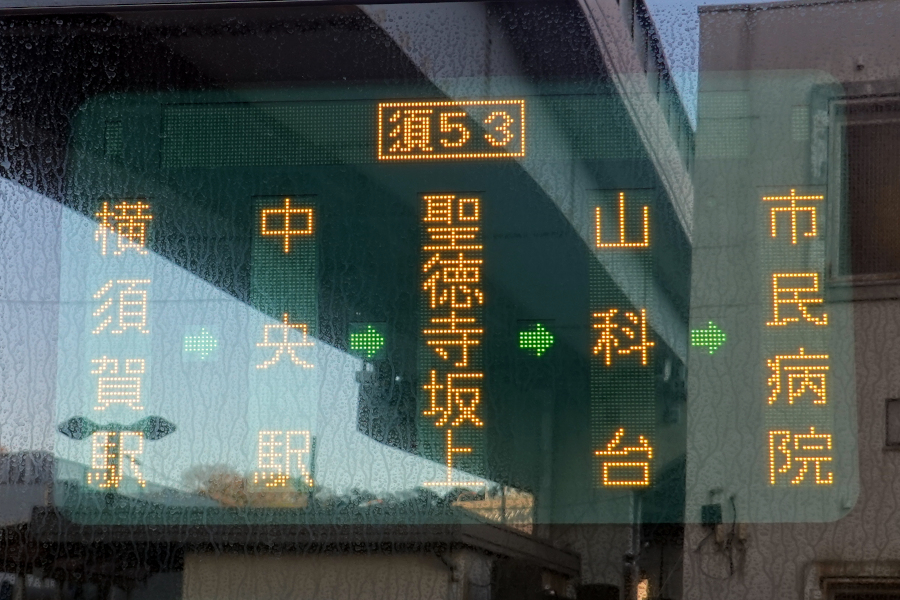 横須賀駅から横須賀中央駅・衣笠十字路を通って横須賀市民病院を結ぶ中距離系統がが須3系統ですが、その派生形と言えるのが今回乗車した須53系統です。途中で山科台地区を経由するのが特徴です。平日は特に運行頻度が少なく、下り6本、上り3本となっています。