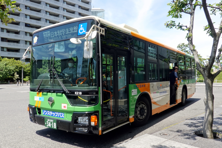 日本科学未来館には定刻より13分遅れて13時02分に到着しました。途中目立った渋滞はなかったので、門前仲町をはじめとした各停留所で乗車客が多く支払いに手間取ったり、満員の乗客をかき分けて降車する必要があったりで乗降に時間が掛かったのが要因として挙げられます。