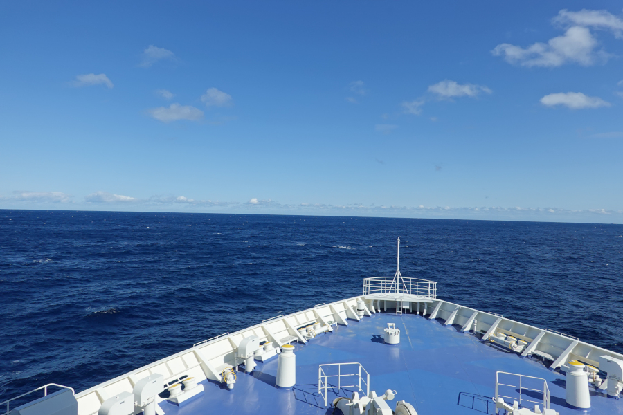 見渡す限り海が広がっています。実にいい天気ですが、場所によっては大きく揺れる場面もありました。