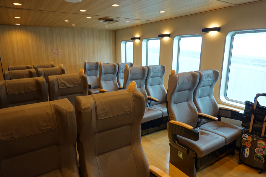 れいめい丸は既存船よりリクライニングシートが多く設定されている点が好印象です。合計4区画設定されているのですが、全てトイレの真横に立地している点は微妙です。