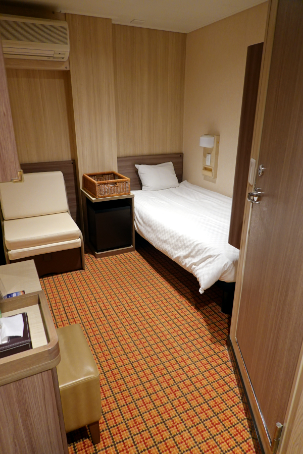 今回は2名でも利用できる「スーペリア」を利用します。1人利用だと空間が広く非常に快適です。2人利用の場合は左のソファを展開してベッドになりますが、非常に横幅が狭くて客室自体も狭く感じるので2人利用はお勧めできません。