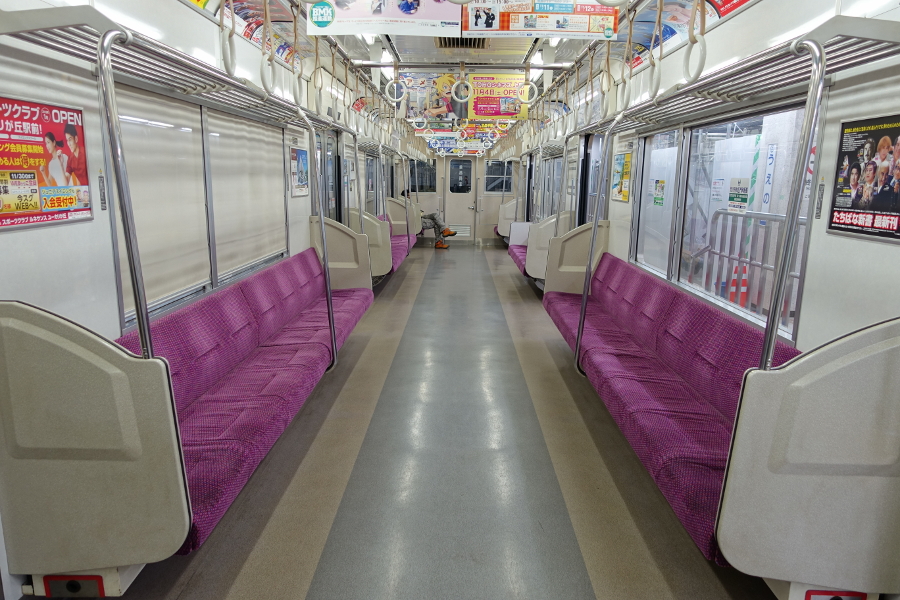 車内は3700形6次車以降とほぼ同等のデザインになっています。ドア上のLED表示器も相変わらず千鳥配置です。
