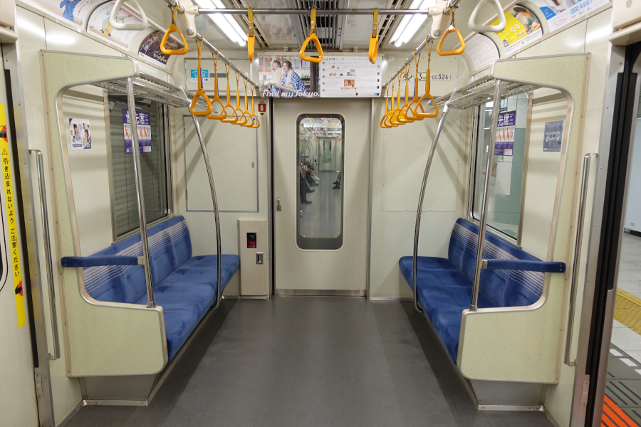 一部の車端部には車椅子スペースが設けられています。近年の車両ではフリースペースという言い訳で座席を大幅に減らしていますが、ここは東京メトロ最後の良心なのか2人がけの座席を設けてくれています。