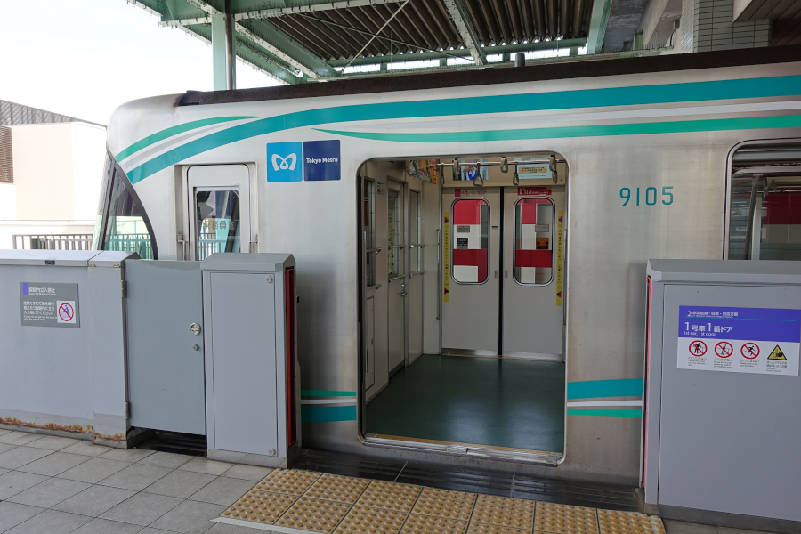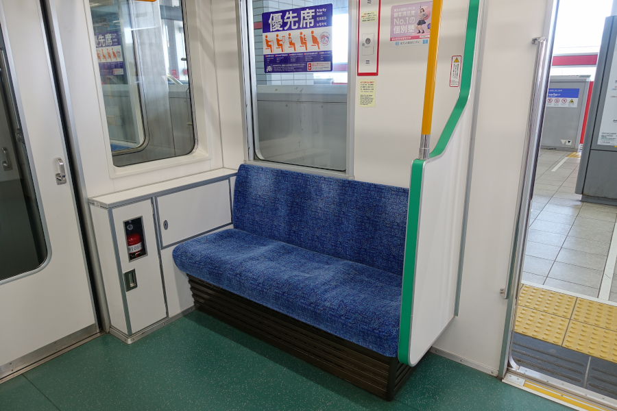 車端部には優先席やフリースペースが設けられています。画像を見比べていると気づいたのですが、4次車と比較すると妻窓の幅が大きくなっています。なお9000系1次車には東京メトロで唯一のボックス席が設けられていましたが、B修工事で撤去されてしまいました。ラッシュ時を考慮すると妥当の判断かと。