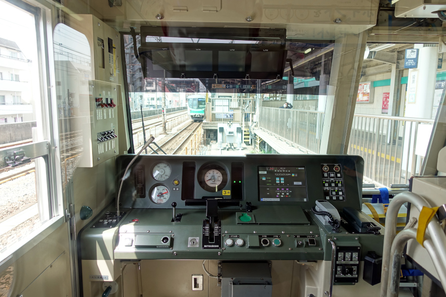05系B修工事施工車ではワンハンドルマスコンに換装されていますが、東西線仕様は左手操作型を採用したのに対して、千代田線北綾瀬支線仕様車は両手操作型を採用しています。本線の16000系は左手操作型なので、なぜ統一しなかったのか気になります。右手で運転操作をしつつ左手でマイクを寄せて放送する事を可能にしたかったのでしょうか?