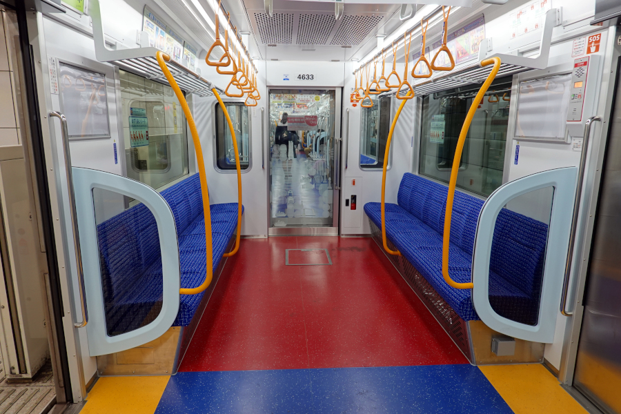 対して優先席がある区画の場合は床面が赤色となっていて、側面や妻面の化粧板は白色となっている点が異なります。座席モケットは同じものです。