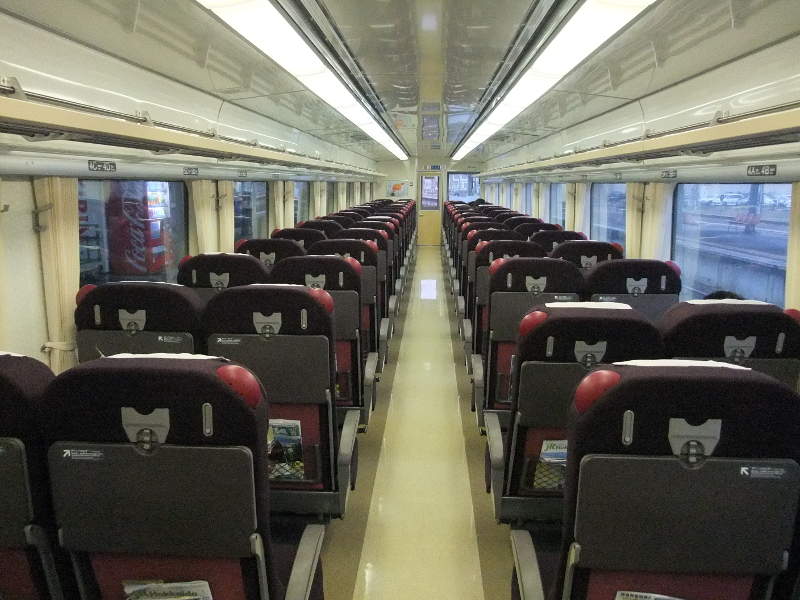 全体的な雰囲気は国鉄型らしいですが、座席は新型特急列車で採用されているものに交換されています。デッキ寄りには大型荷物置き場も設けられています。
