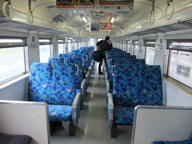 車内は転換クロスシートになっていますが、座席とシートピッチが合っていないので、窓側なのに外の景色が見られない席が存在します。他にも簡易リクライニングシートを装備した車両もあり、バリエーションは多いです。