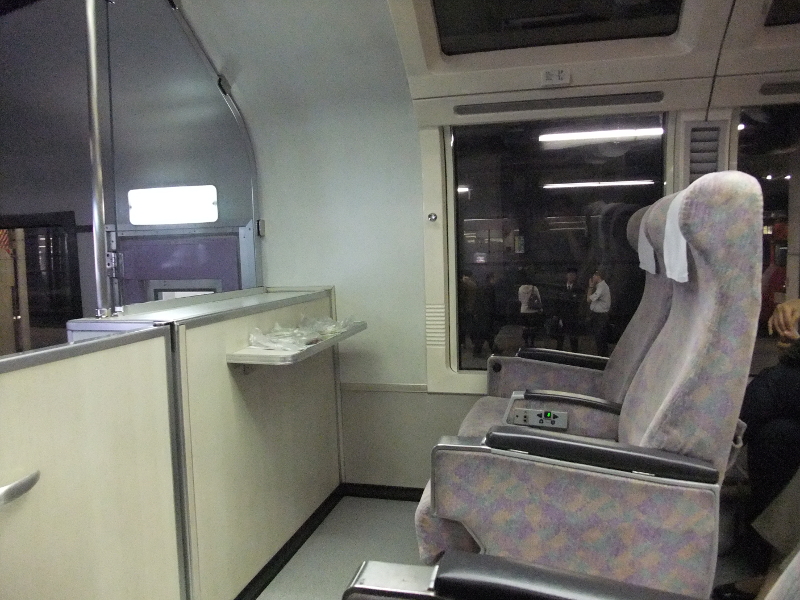 3号車は2階建て車両になっていて、2階は普通の座席が並んでいます。天井が低く少々圧迫感がある事もあってか、臨時特急運転時には自由席になる事が多いです。座席自体は他の号車のものと同一です。