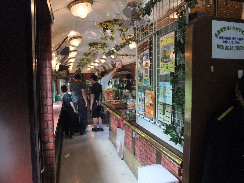 元々はスハフ44でしたがカフェスペース設置改造を受けてスハシになりました。なぜ貴重な旧型客車を改造したのかは疑問ですが。記念撮影用に制服の貸し出しなども行っていて賑わっていました。