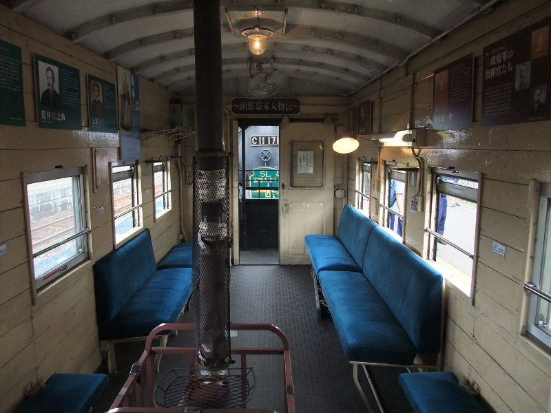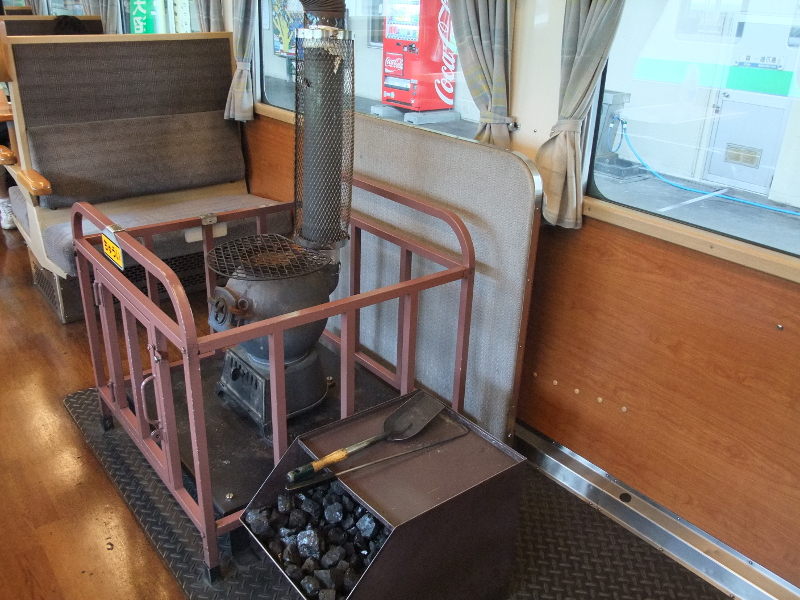 各車両にはダルマストーブが設置されています。乗車時は夏だったので当然使用されていませんでしたが、冬はストーブの上にある網に乗せてスルメイカなどを焼く事も出来るようです。
