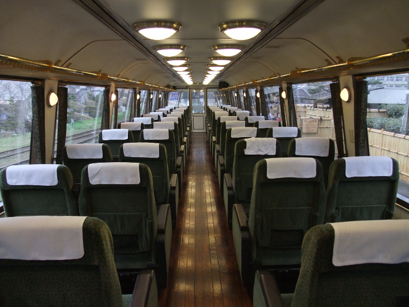 九州有数の観光地「湯布院」への観光列車として大人気のゆふいんの森号用の車両がキハ71系です。新製ではなく改造車ですが、種車の面影は全くありません。全車ハイデッキ構造なので側窓が高い位置に設けられているのが特徴です。流線型の先頭部デザインは外国の車両を想像させます。高い位置まで窓が設けられていて、前面展望も良好…と言いたいのですが詳しくは後述。