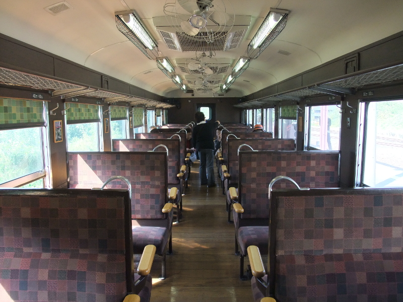 車内は大きく模様替えが行われて、ドーンデザインらしい雰囲気の車内になりました。ですが種車の国鉄型としての雰囲気もある程度残されています。