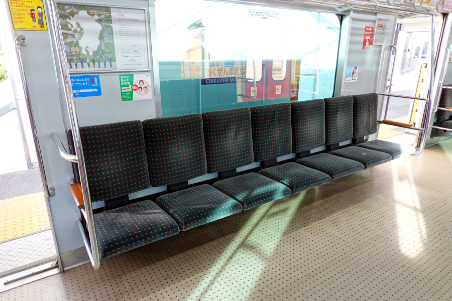 座席は一人ずつ分割された仕様で座り心地は悪くありません。混雑する地下鉄線内の事を考えると握り棒が欲しかったです。側窓は大型の1枚窓となっています。