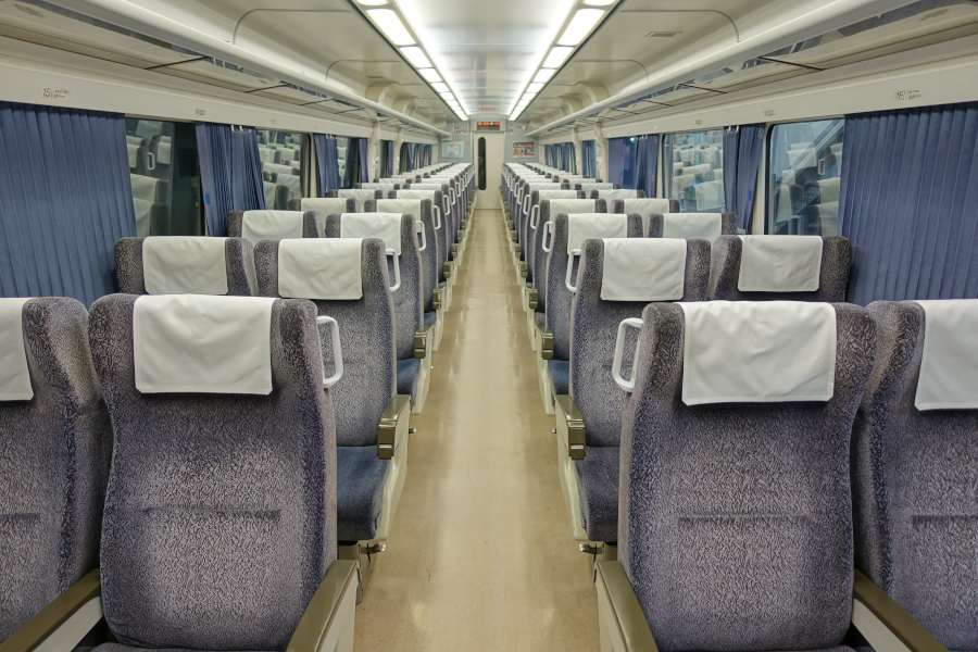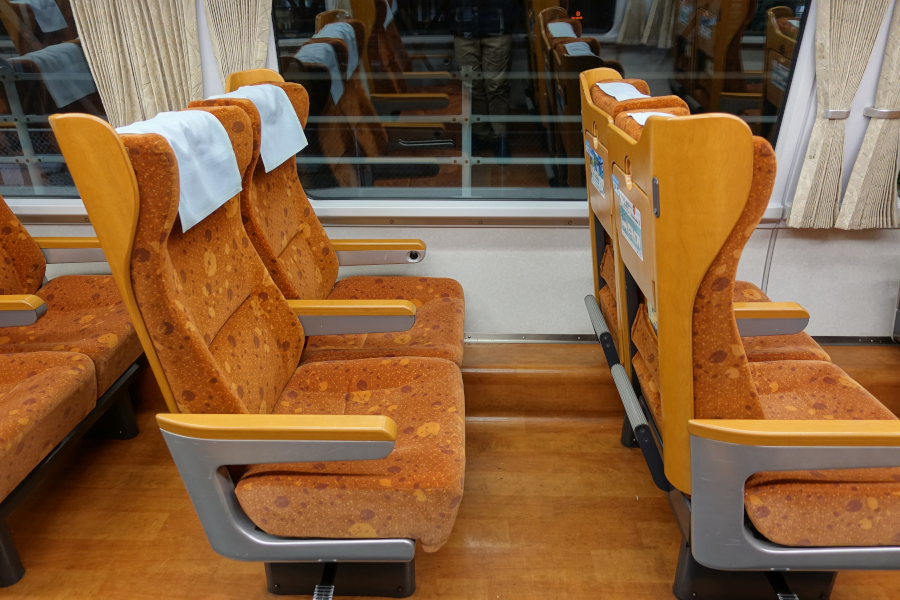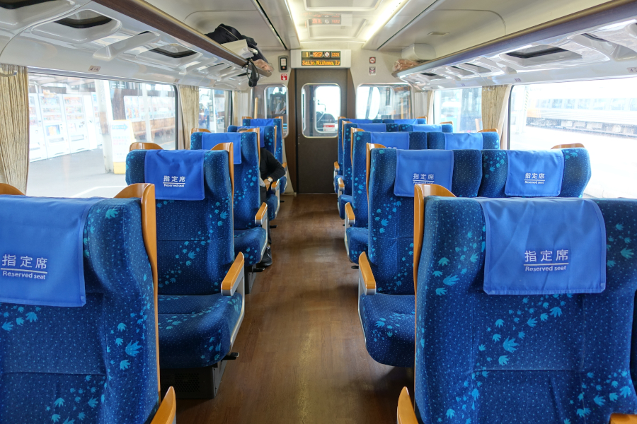 指定席車両はリニューアルに伴い座席を換装しており、全体的に温かみを感じる配色になっています。