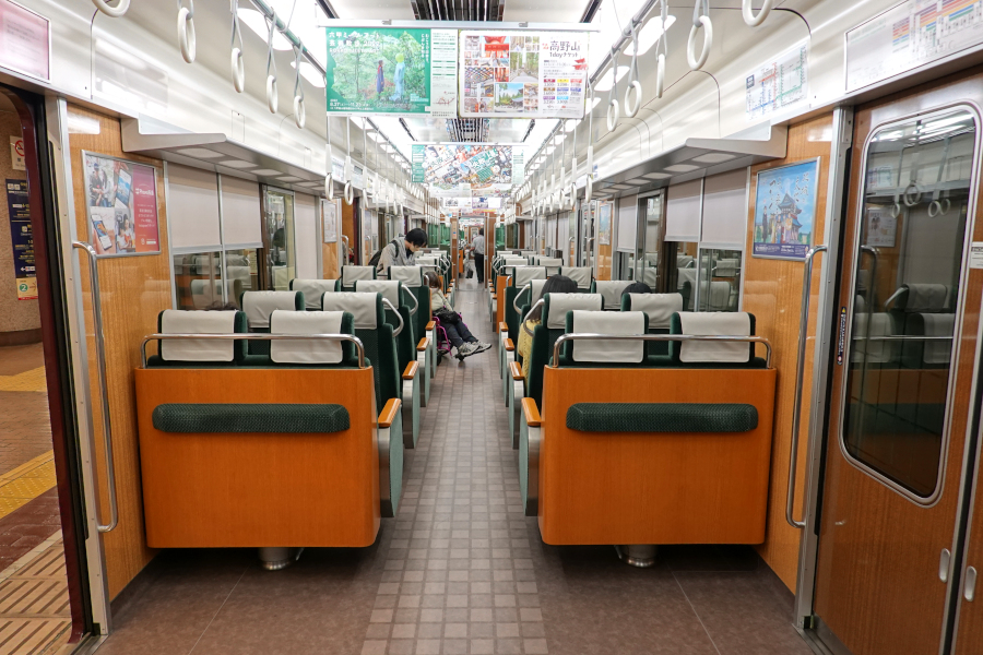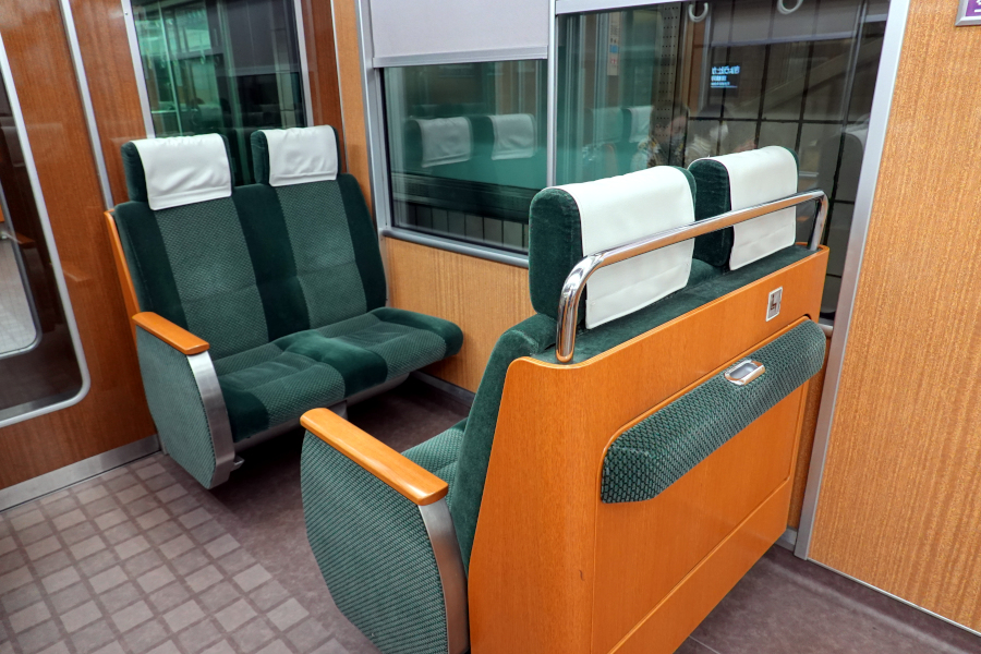 大阪寄りの車端部はボックス席となっています。また唯一の補助席も設置されています。