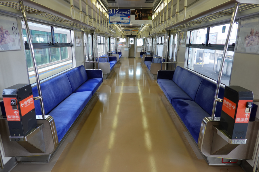 座席は7人掛けと思われ、側窓は大きく開放感があります。この辺りの雰囲気は大和路線で運用されている201系とよく似ています。