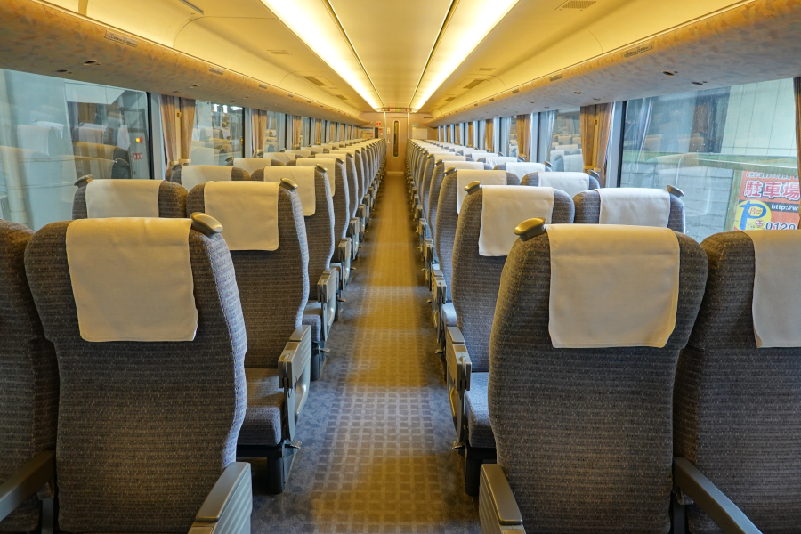 非貫通先頭車は半室グリーン車に改造されました。1+2列に配置された大型の座席はグリーン車としての堂々とした風格を感じさせます。グリーン席は5列確保されています。