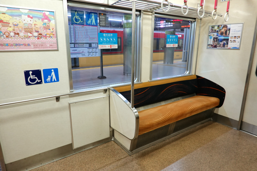 優先席の座席モケットも張り替えられています。2025年末までには全編成リニューアルが実施されるそうなので、リニューアル前の内装が確認できてよかったです。