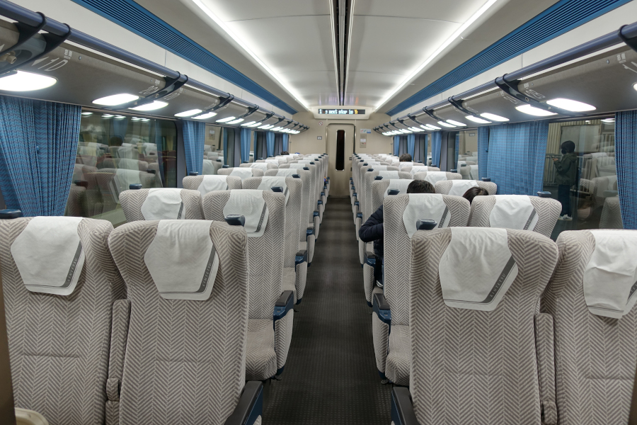 車内で採用されているすべての照明はLED灯に換装されています。画像では分かりませんが車内がやたら明るく、目を閉じて休むのが難しいくらい眩しく感じました。内装の色合いは全体的に落ち着いた雰囲気です。