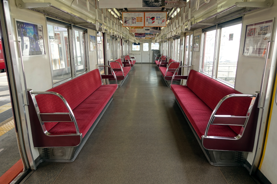運行開始から30年以上が経過していますが、座り心地は良好です。座席は6人掛けと思われます。