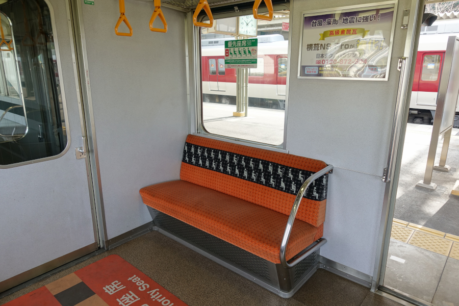 優先席のモケットも最新車両と同等のものに交換されています。こちらは3人掛けと思われます。