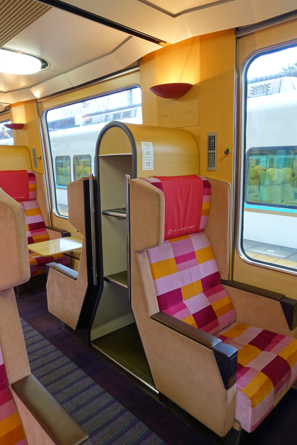 5号車はサロンカーでグループ利用に適した仕様となっています。4人ボックスはサロン席、2人ボックスはツイン席と名付けられています。なおサロン席は3人以上、ツイン席は2人での利用が条件となっています。