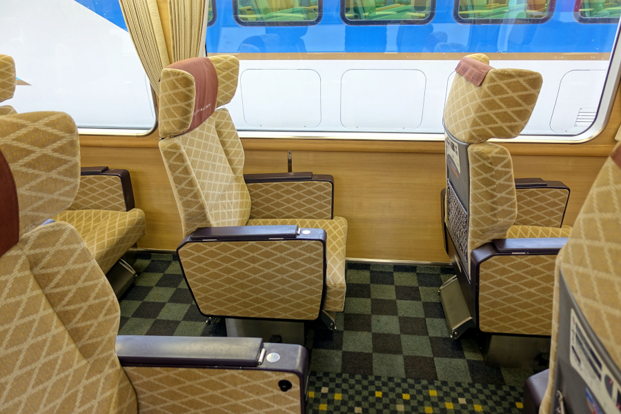 6号車はデラックスカーで2+1配列で座席が並んでいます。全体的に落ち着いた上品な雰囲気です。
