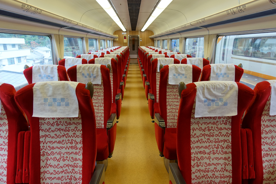 座席は平屋車のものと同一で色違いとなっています。眺望は抜群に良いのですが、如何せん収納に困ってしまうのが残念です。乗車の際には荷物は少なめで。
