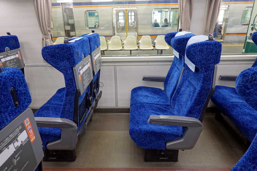内装は特急型としては必要十分な仕様となっています。南海の安価な特急料金を考えるとかなりお得と言えます。荷棚下の補助照明は関西の鉄道らしさを感じます。