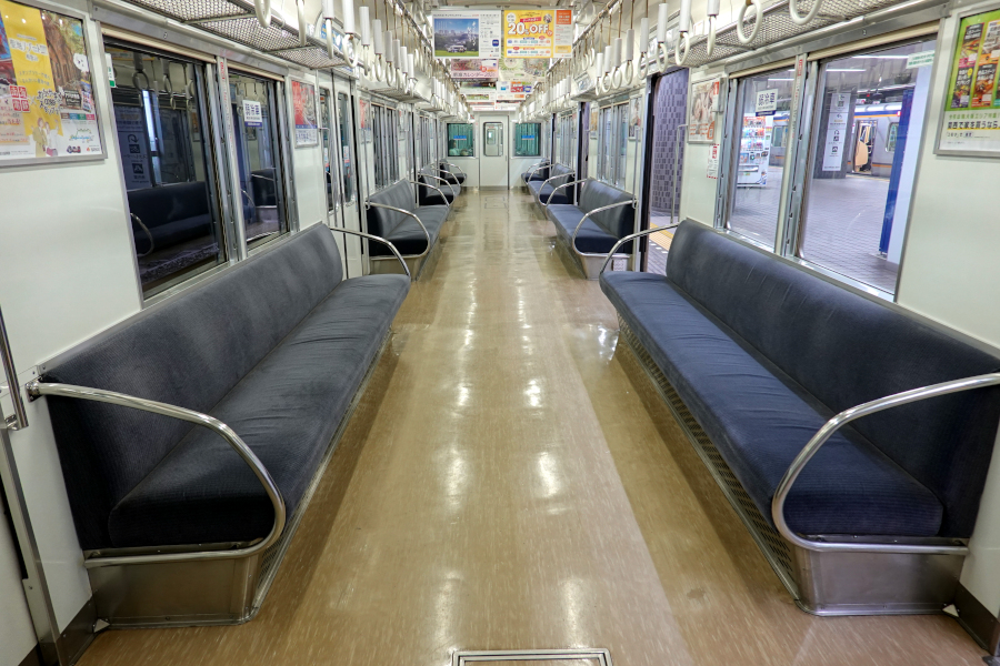 袖仕切りはパイプ式で、座席は着席区分の無いロングシートです。恐らく7人掛けと思われます。