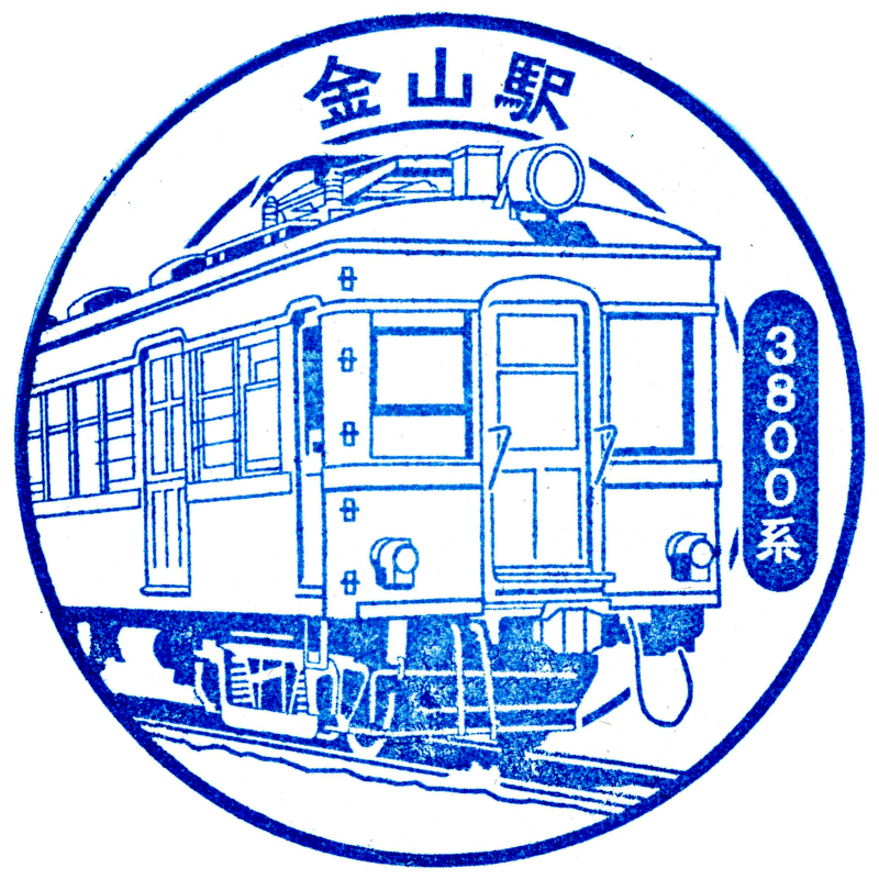 右:金山駅のスタンプには3800系が描かれています。1989年まで活躍してきた旧型車両だそうです。子のスタンプラリーでは旧型車両も積極的に図案に採用されています。
