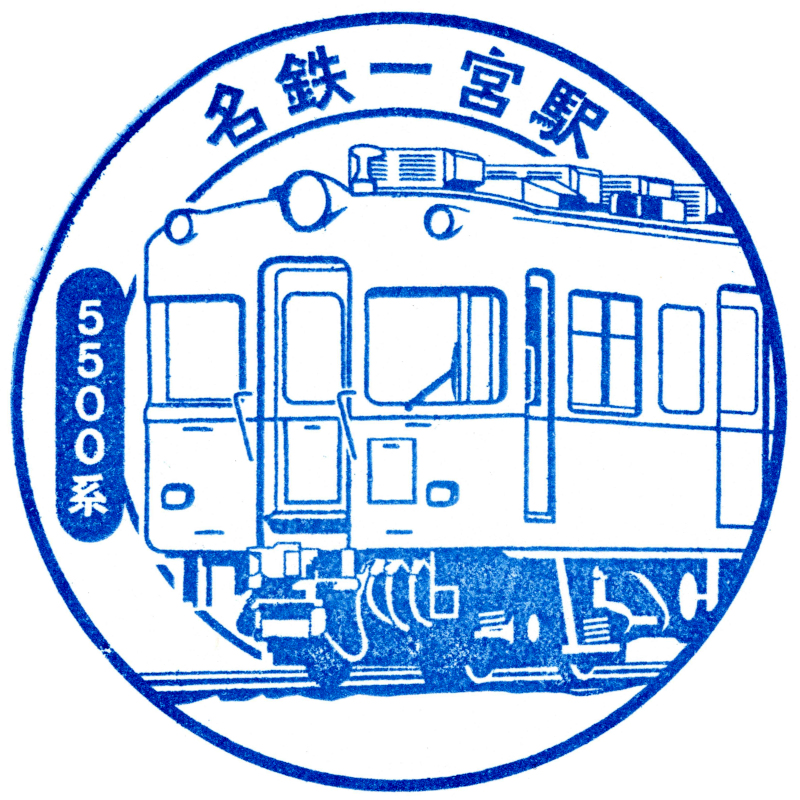 右:名鉄一宮駅のスタンプは5500系でした。特別料金を徴収しない列車においては日本初の冷房車だそうです。