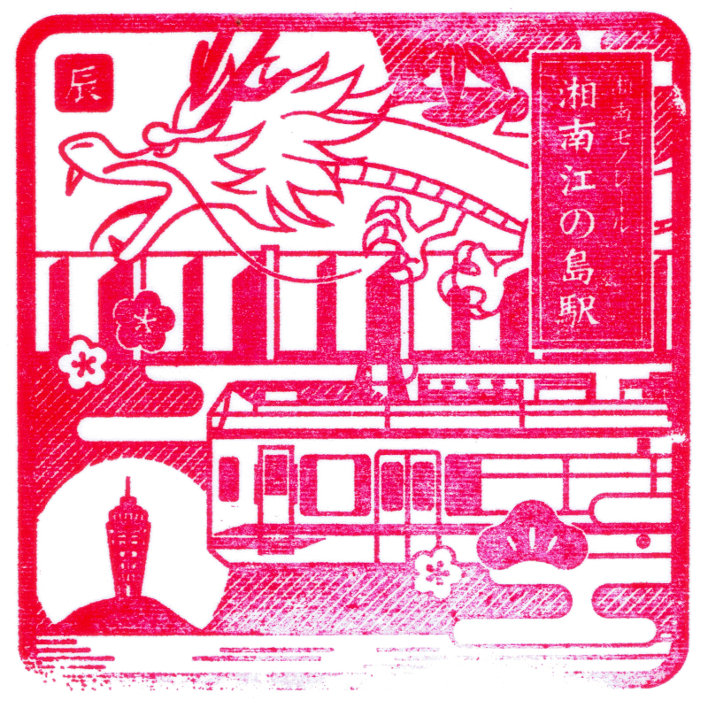 左:湘南江の島駅の2024年の干支スタンプは一昨年の大船駅のスタンプと似ています。また湘南町屋駅のスタンプにも似ていて、干支スタンプはこの辺りのデザインを左右反転させたり多少の変化をつけて作成して作っているようです。