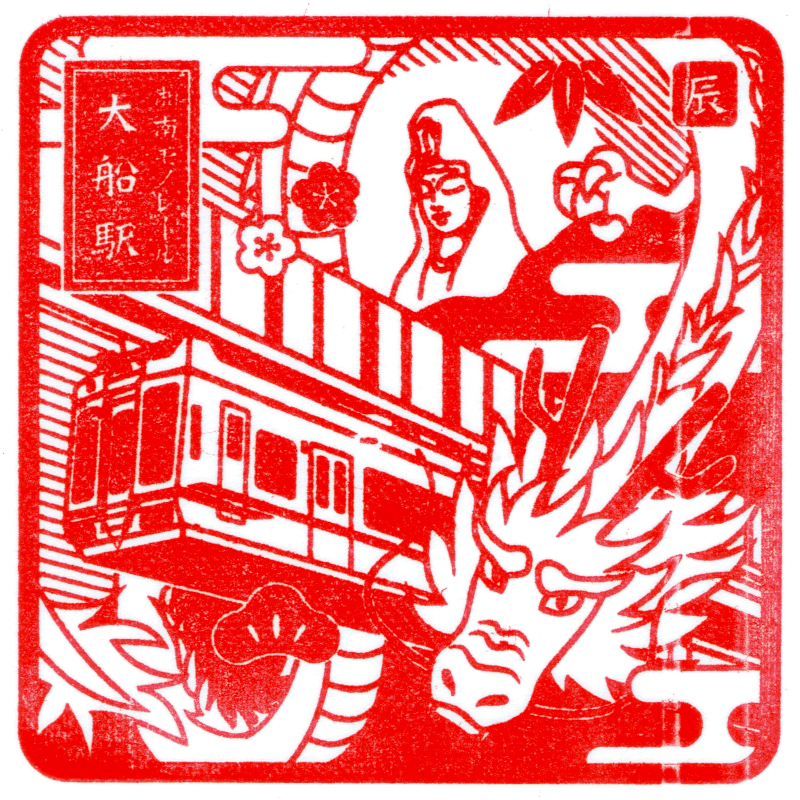 右:大船駅のスタンプは昨年とほぼ同じデザインですが、昨年と比べて今年は辰年なので絵面が派手ですね。