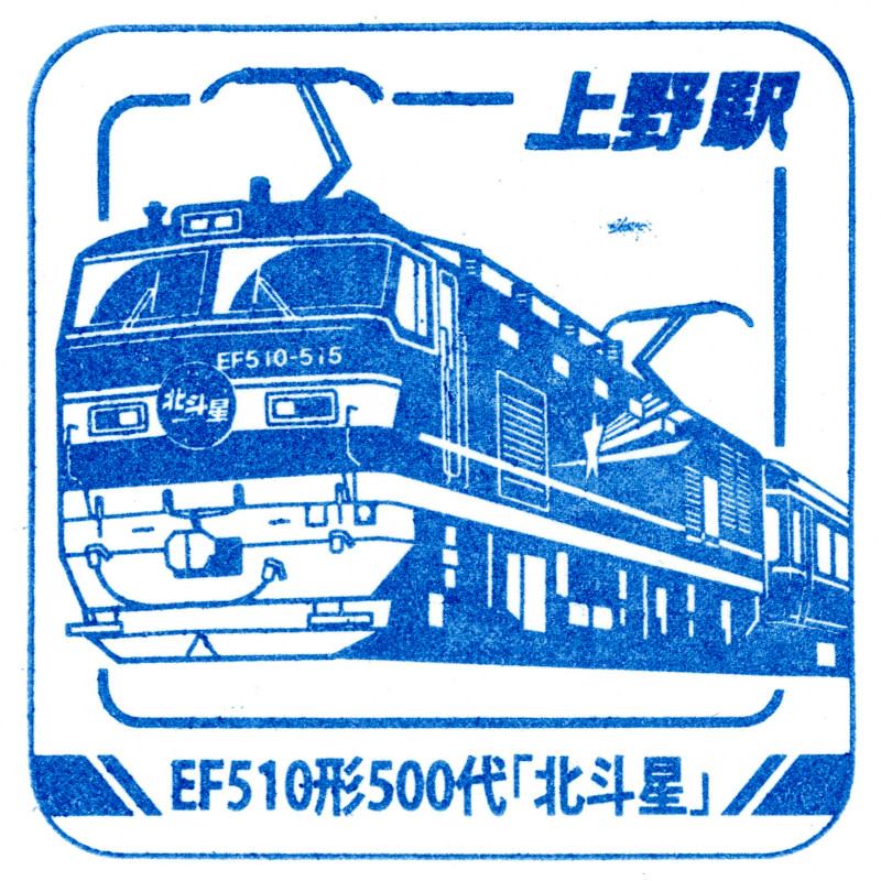 左:上野駅のスタンプはEF510形500番台でした。北斗星のけん引用として専用塗装で活躍していました。列車廃止後はJR貨物へ売却されています。