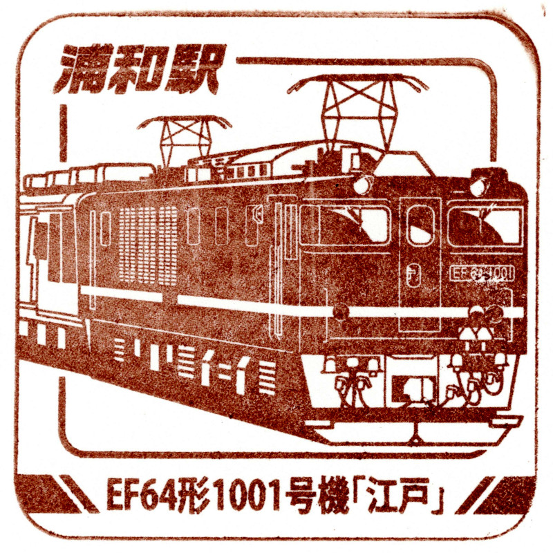 右:浦和駅のスタンプはEF64形1001号機でした。ジョイフルトレイン牽引を目的にぶどう色へ塗色変更されて活躍していました。