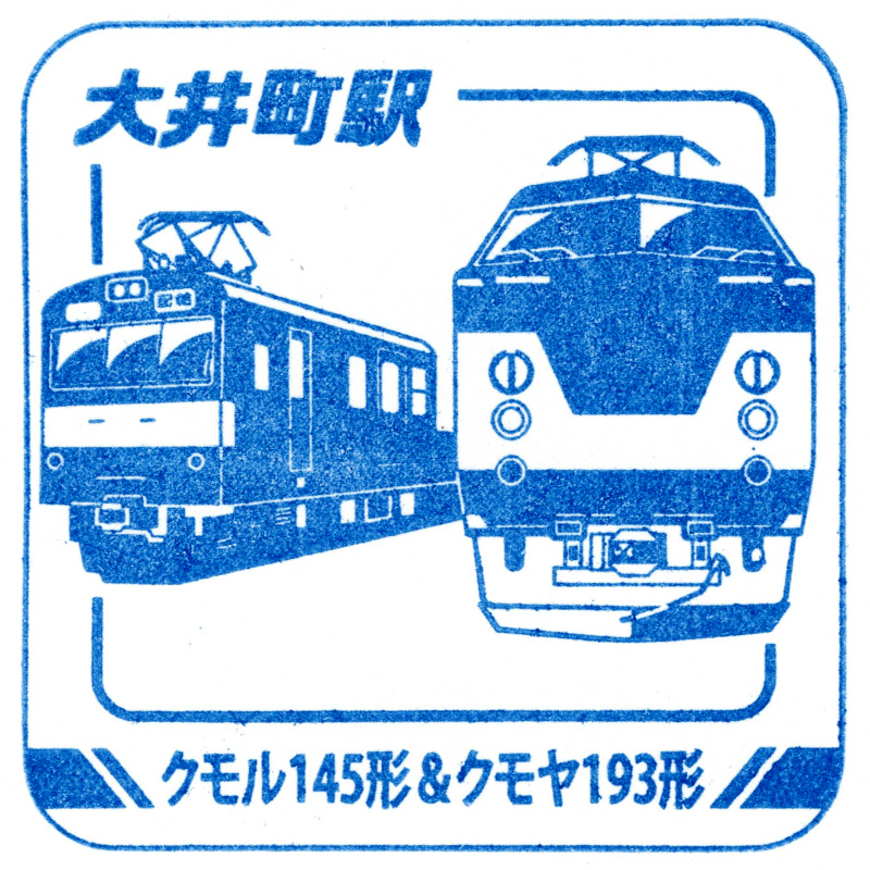左:大井町駅のスタンプはクモル145形とクモヤ193形でした。どちらも事業用車両で、クモル145形はトラックの平ボティのように屋根のない荷台のある配給電車です。クモヤ193形は信号・架線の検測をする車両でした。
