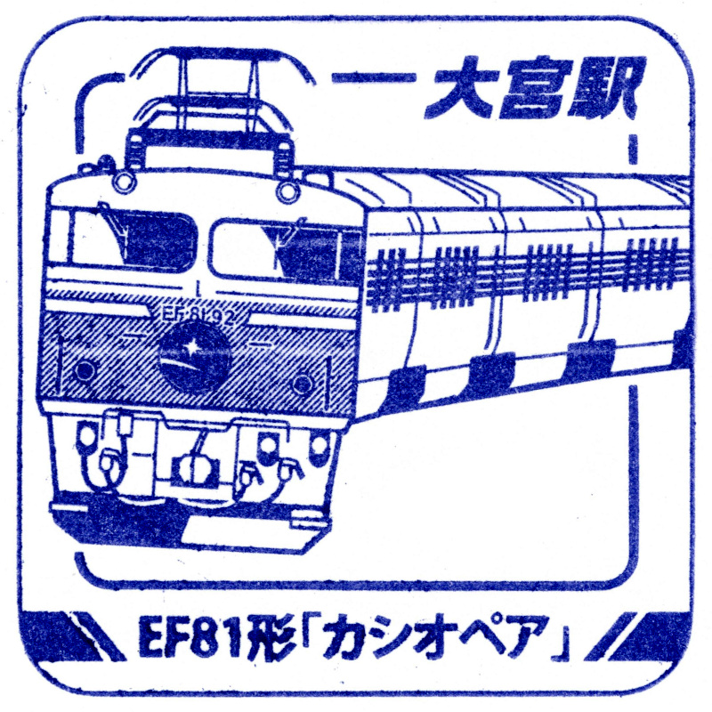 左:大宮駅のスタンプはEF81形カシオペア塗装でした。国鉄型電機に似つかわしくない塗装だと感じましたが、撮り鉄的には人気があったようです。