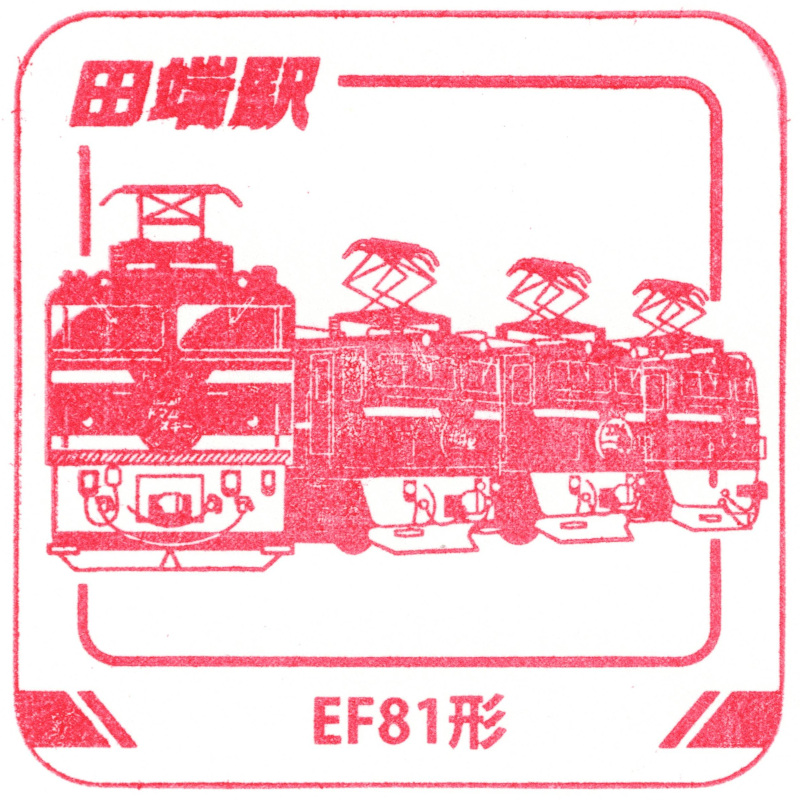 左:田端駅のスタンプはEF81形でした。田端運転所には北斗星など客車列車けん引用の機関車が配置されていました。