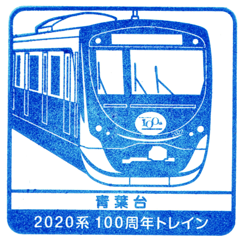 左:青葉台駅のスタンプは2020系100周年トレインでした。すっかり田園都市線の主力車両として君臨しています。