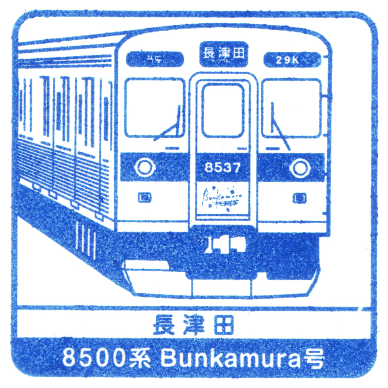 右:長津田駅のスタンプは8500系Bunkamura号でした。かつての田園都市線の主も今では地方私鉄に譲渡されて余生を送っています。