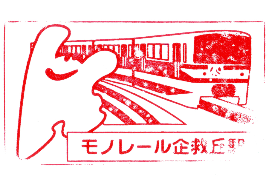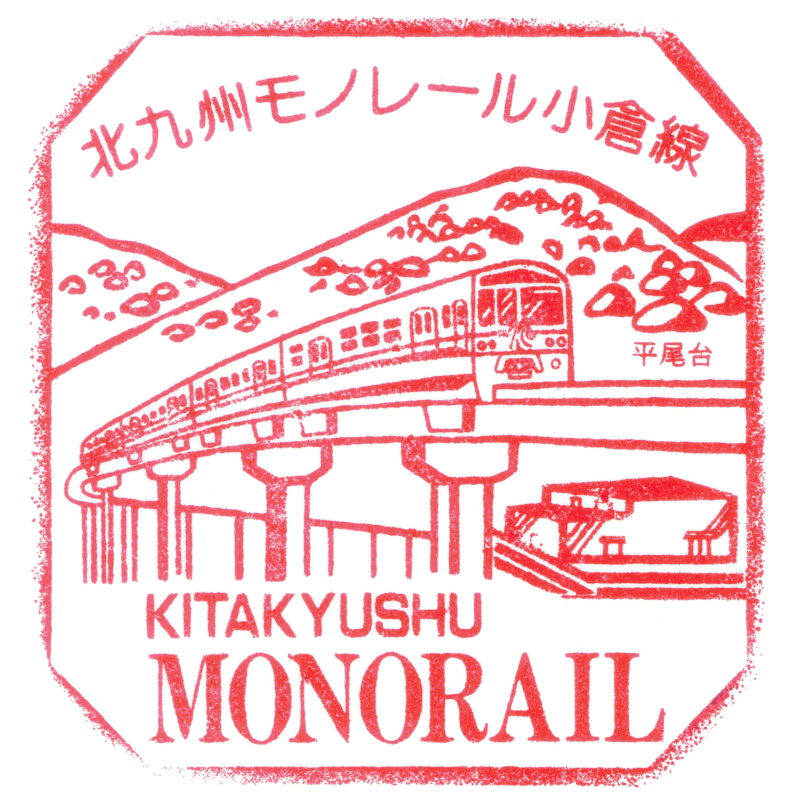 右:北九州モノレールの終点である企救丘駅にもスタンプが設置されています。レトロな雰囲気のスタンプですが状態は良好です。