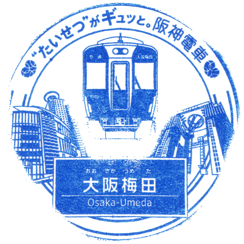 左:いつの間にか阪神の一部駅に設置されていたスタンプが更新されていました。大阪梅田駅のスタンプには5700系が描かれています。阪神で最新の車両でブルーリボン賞を受賞しています。