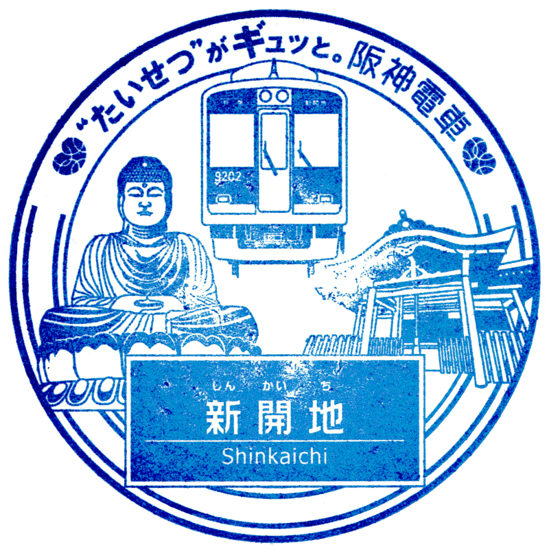 左:阪神電車の主要駅には駅スタンプが設置されています。新開地駅は9000系が描かれているのですが、印面の状態が悪く判別は困難です。