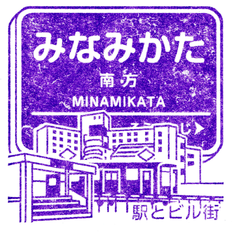 左:南方駅のスタンプにはホーム直結の改札口が描かれています。上下線の移動は踏切を渡る必要がありますが、いわゆる開かずの踏切になっているそうです。