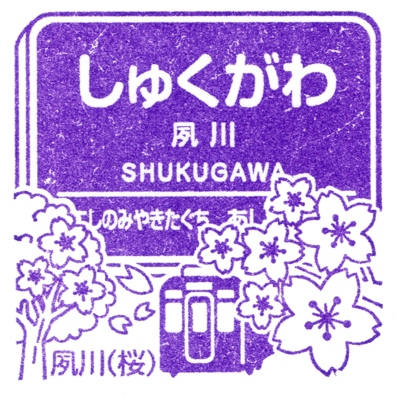 右:夙川駅のスタンプには車両と桜が描かれています。周辺は沿線でも屈指の高級住宅街だそうです。